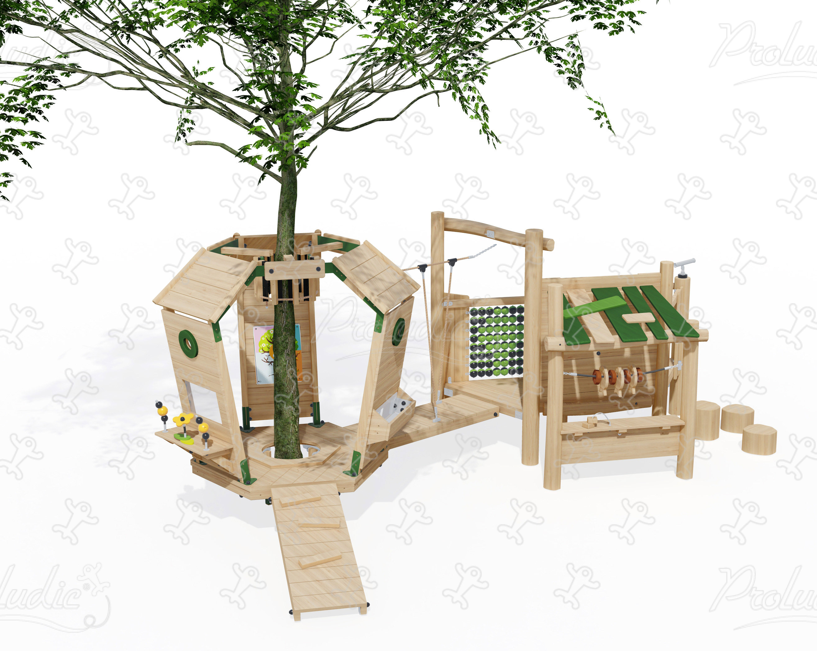 Fákhoz kapcsolódó platform faházzal és játékpanellel - J49905®