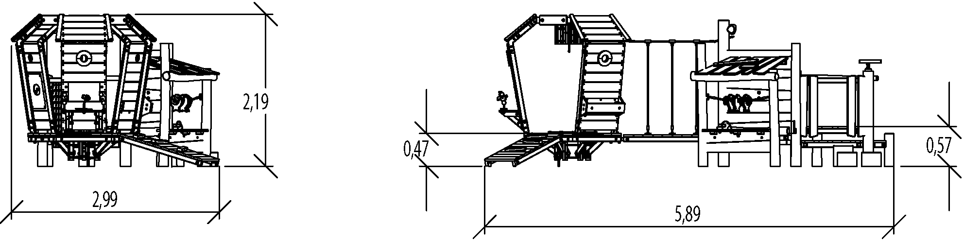 A modul méretei a következők: 5,89 m hosszú, 2,99 m széles, 2,19 m magas. A szabadesési magasság (HCL) 0,60 m.