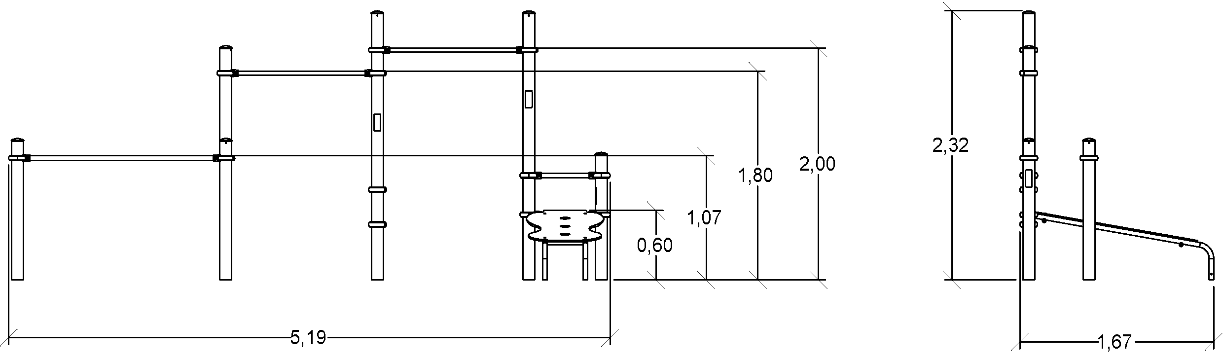 A modul méretei a következők: 5,19 m hosszú, 1,67 m széles, 2,32 m magas. A szabadesési magasság (HCL) 1,10 m.