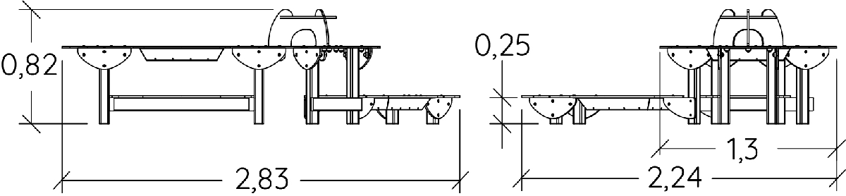 A modul méretei a következők: 2,83 m hosszú, 2,24 m széles, 0,82 m magas.