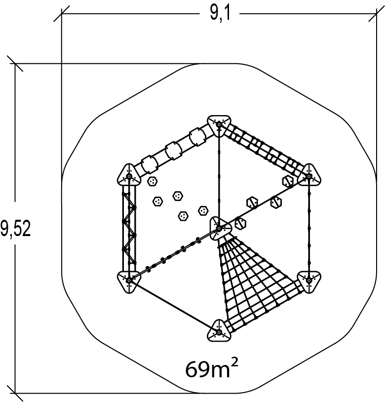 A modul méretei a következők: 6,52 m hosszú, 5,88 m széles, 1,80 m magas. A szabadesési magasság (HCL) 0,65 m.