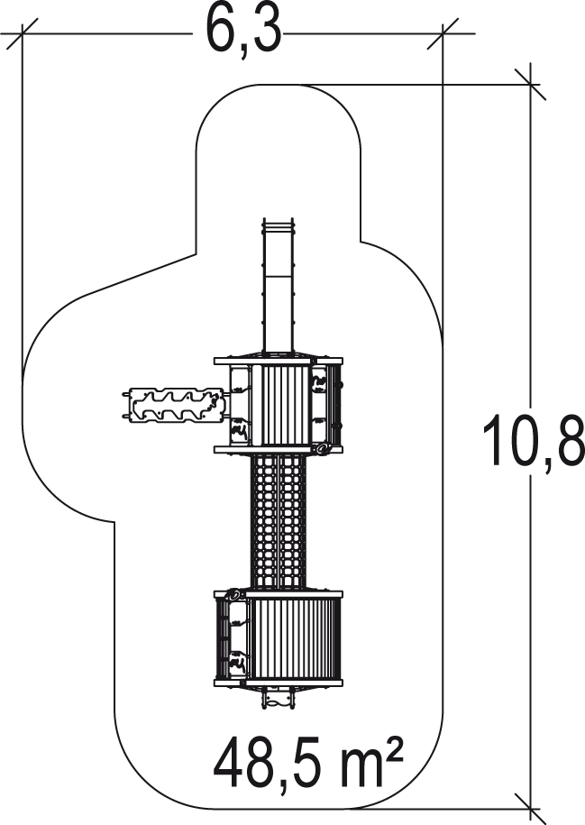 A modul méretei a következők: 7,30 m hosszú, 3,18 m széles, 3,07 m magas. A szabadesési magasság (HCL) 1,17 m.