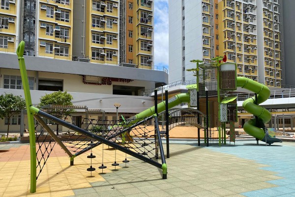 Torony mászókakiegészítővel - Óriás játszótorony kötéljátékokkal, csúszdákkal és kötélhíddal - J56105