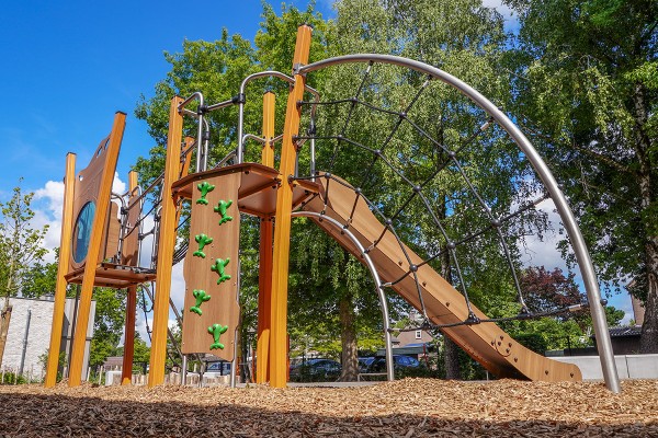 Többjátékos játék mászókákkal és csúszdával, fahatású színben, 28 felhasználónak - J5616-C®