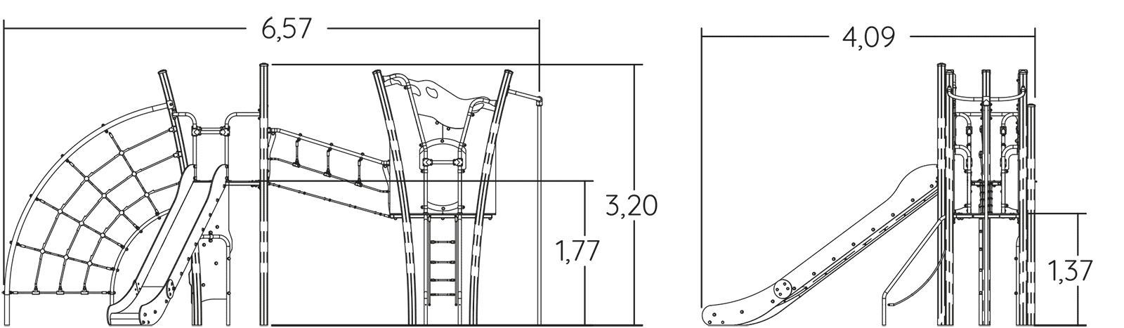 A modul méretei a következők: 6,58 m hosszú, 4,11 m széles, 3,21 m magas. A szabadesési magasság (HCL) 2,70 m.