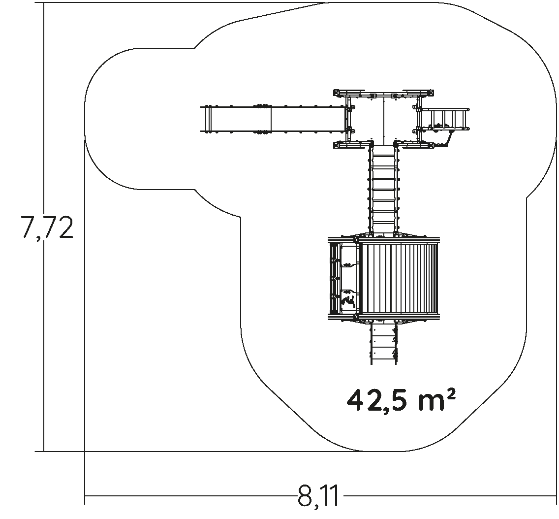 A modul méretei a következők: 4,78 m hosszú, 4,61 m széles, 3,53 m magas. A szabadesési magasság (HCL) 1,37 m.