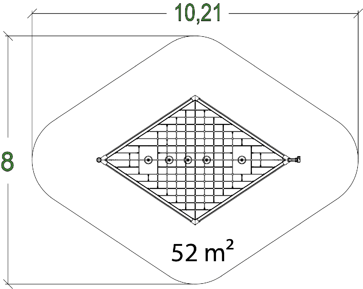 A modul méretei a következők: 6,53 m hosszú, 4,14 m széles, 3,53 m magas. A szabadesési magasság (HCL) 2,00 m.