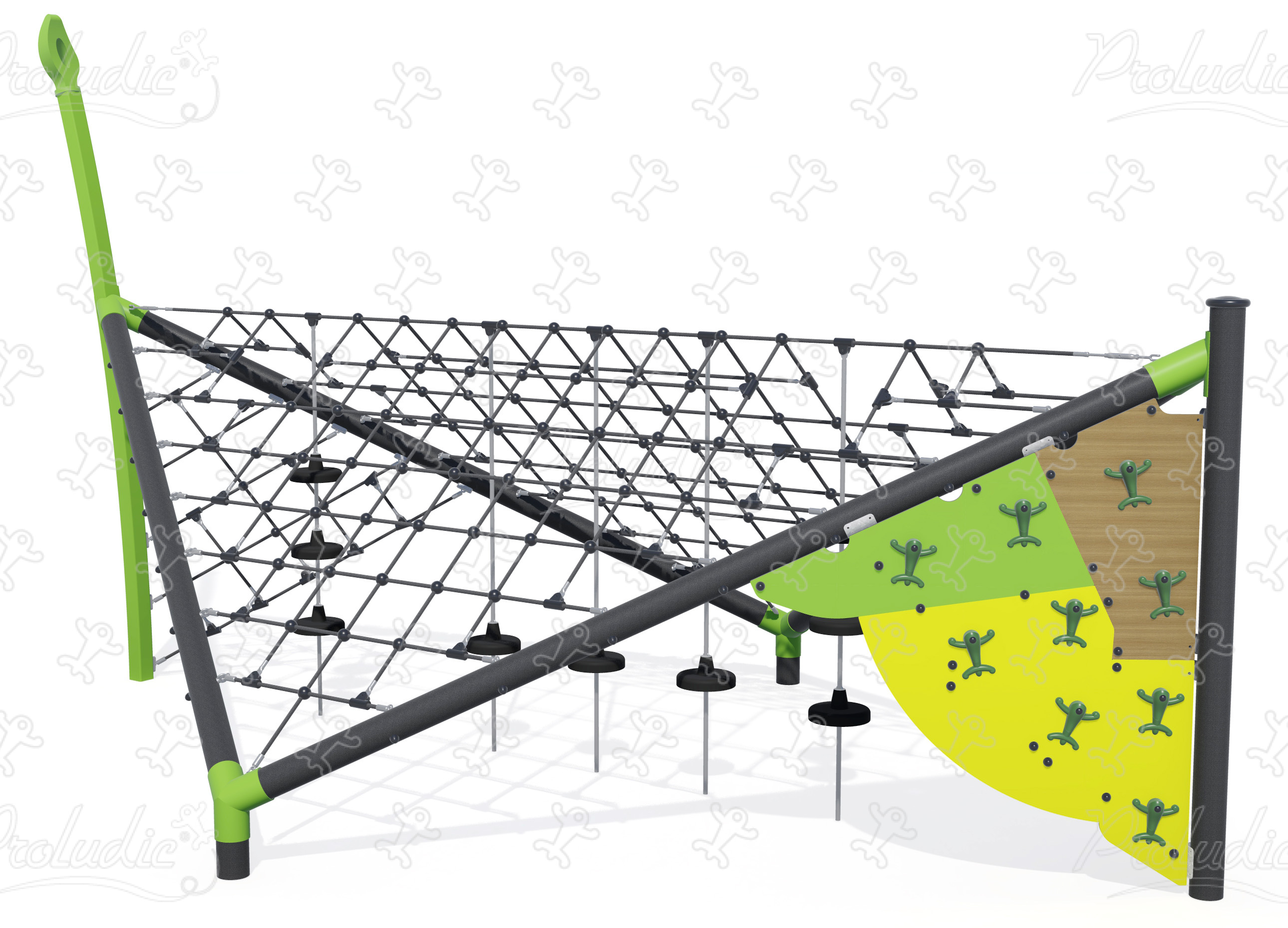 Fém mászóhálós játszótéri eszközök felfüggesztett ülésekkel és játékpanellel - J57006 - J57006