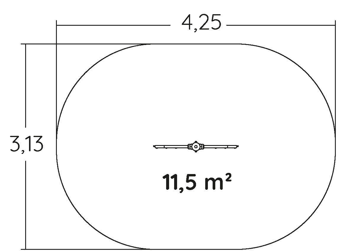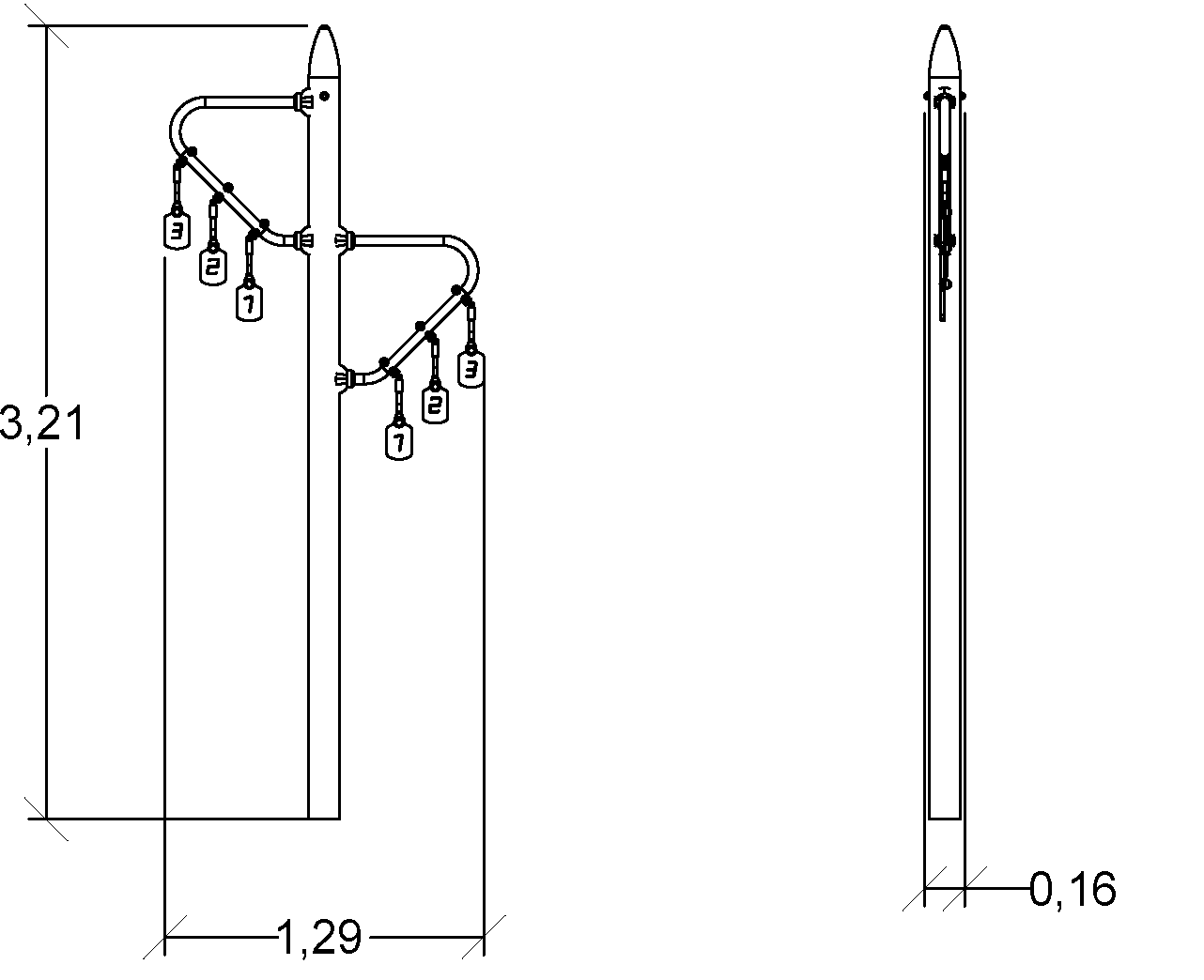 A modul méretei a következők: 1,29 m hosszú, 0,12 m széles, 3,21 m magas. A szabadesési magasság (HCL) 0,60 m.