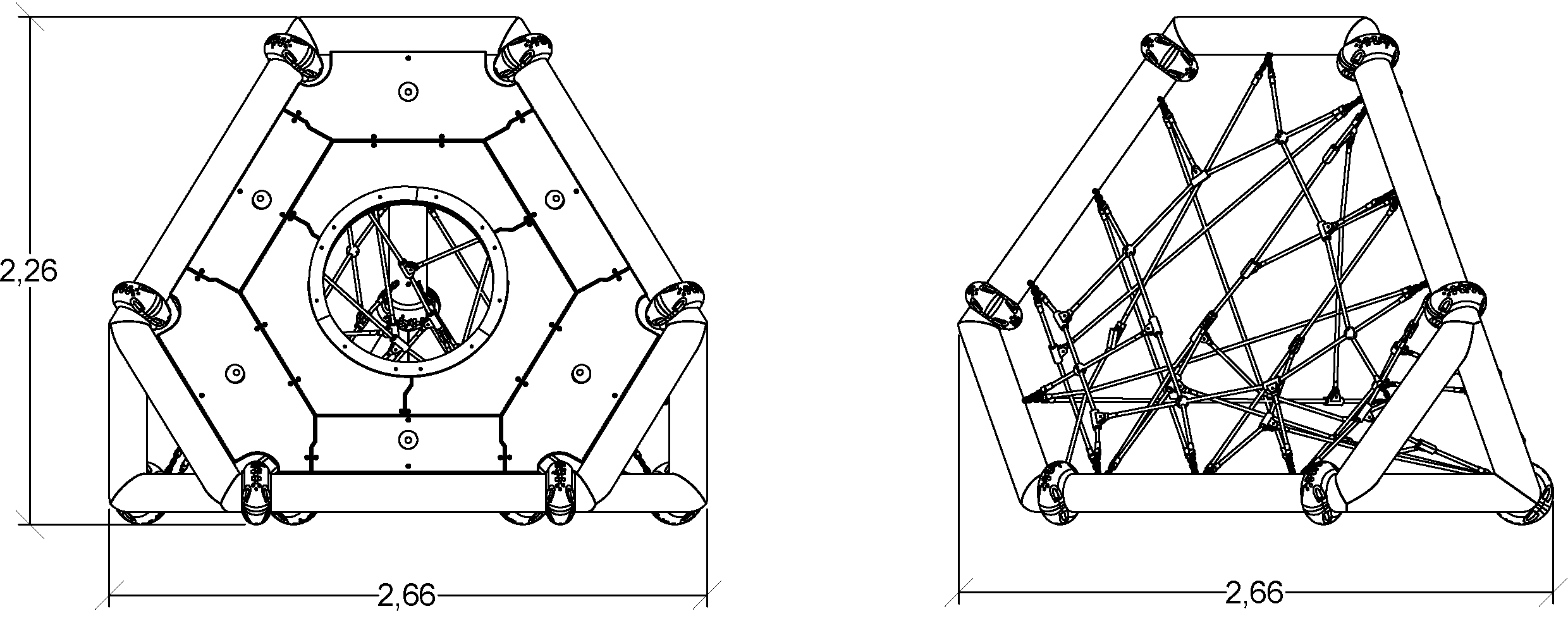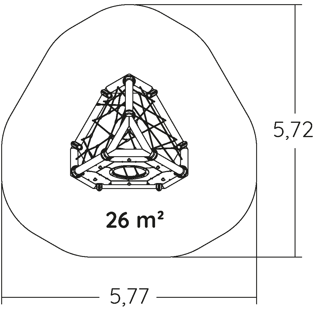 A modul méretei a következők: 2,66 m hosszú, 2,66 m széles, 2,26 m magas. A szabadesési magasság (HCL) 2,00 m.